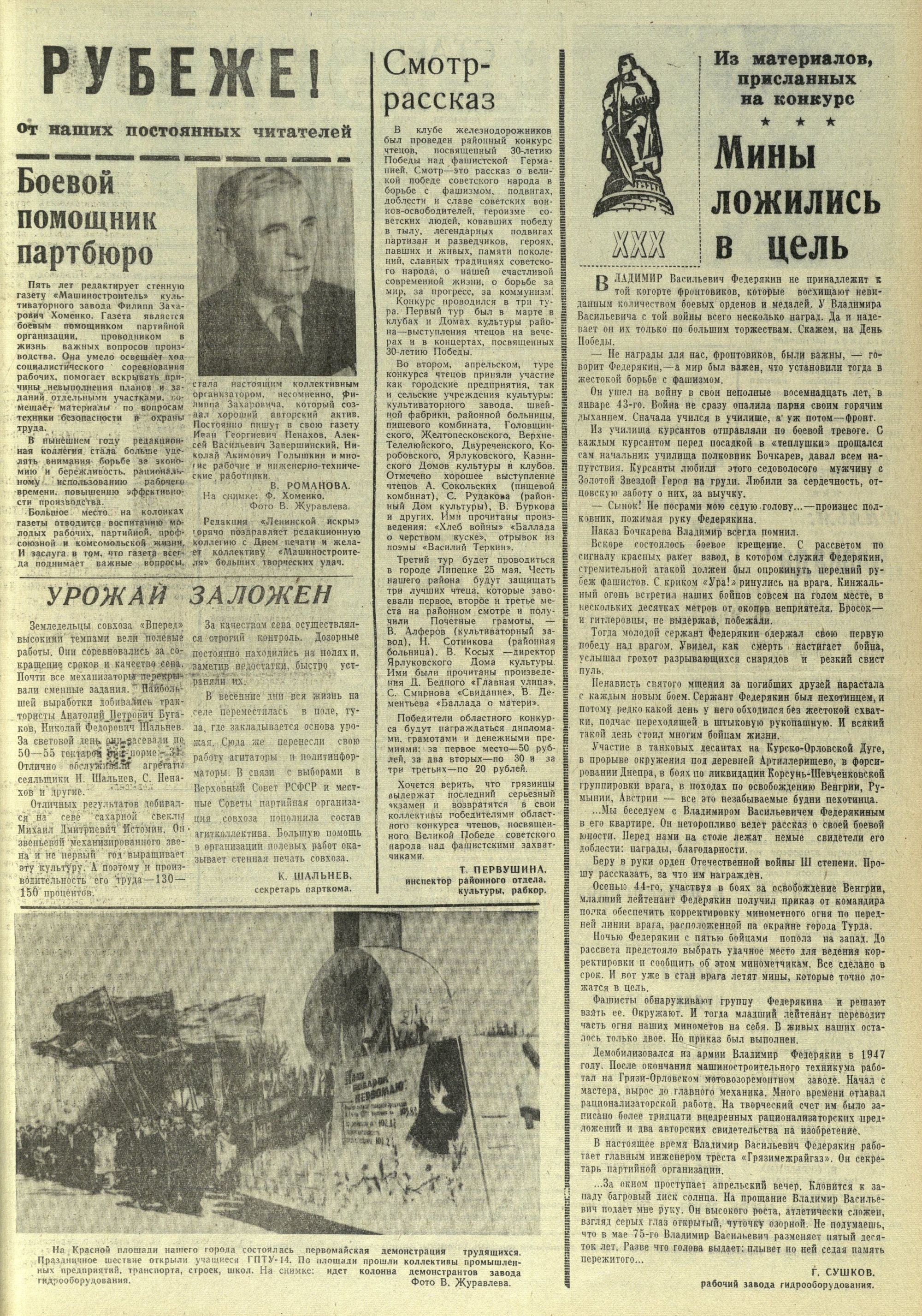 Источник: Сушков Г. Мины ложились в цель // Ленинская искра. – 1975. – 5 мая. – С. 3.