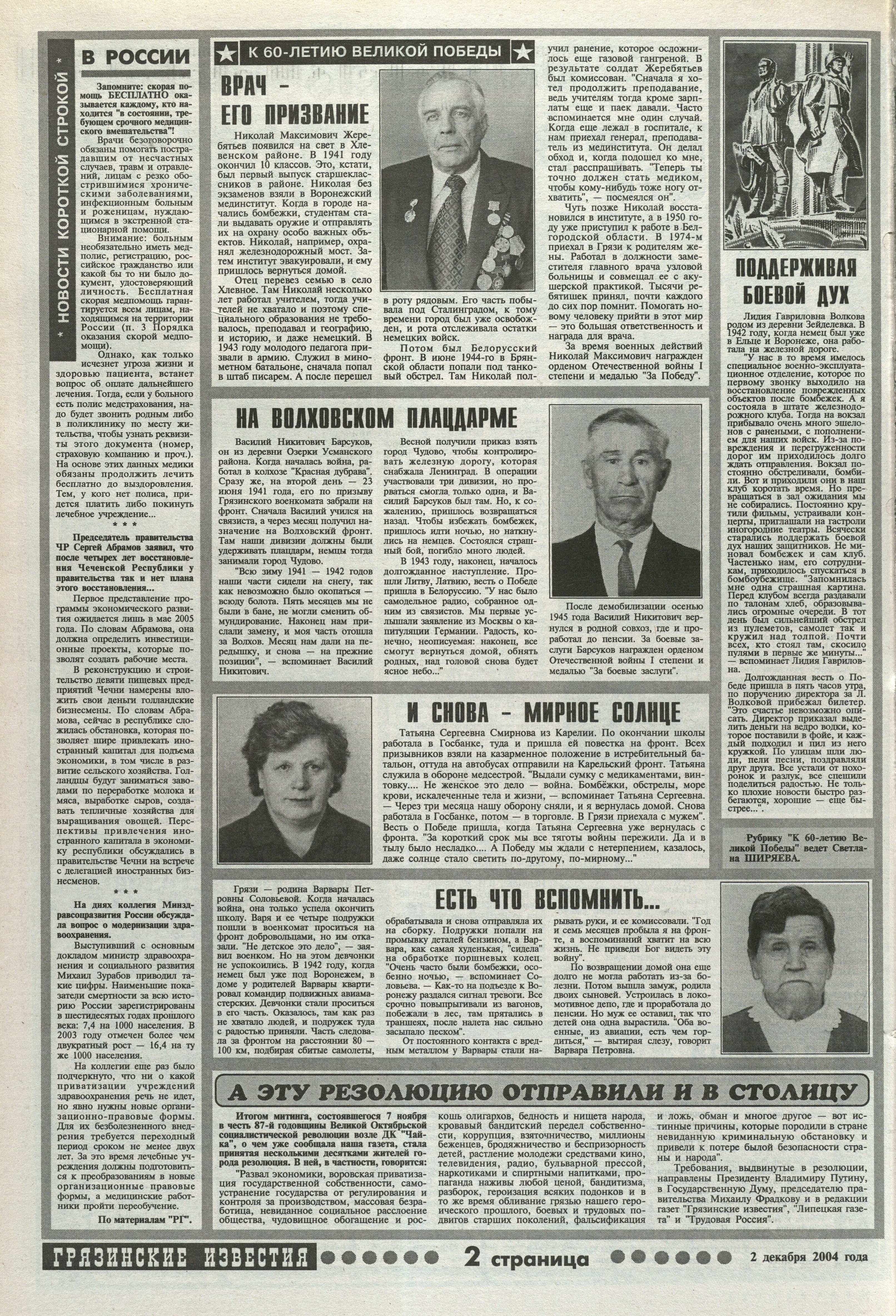 Источник: Врач – его призвание: [об участнике Великой Отечественной войны Н.М. Жеребятьеве; работал врачом в г. Грязи] // Грязинские известия [Грязинский район]. – 2004. – 2 дек. – С. 2 : фот.