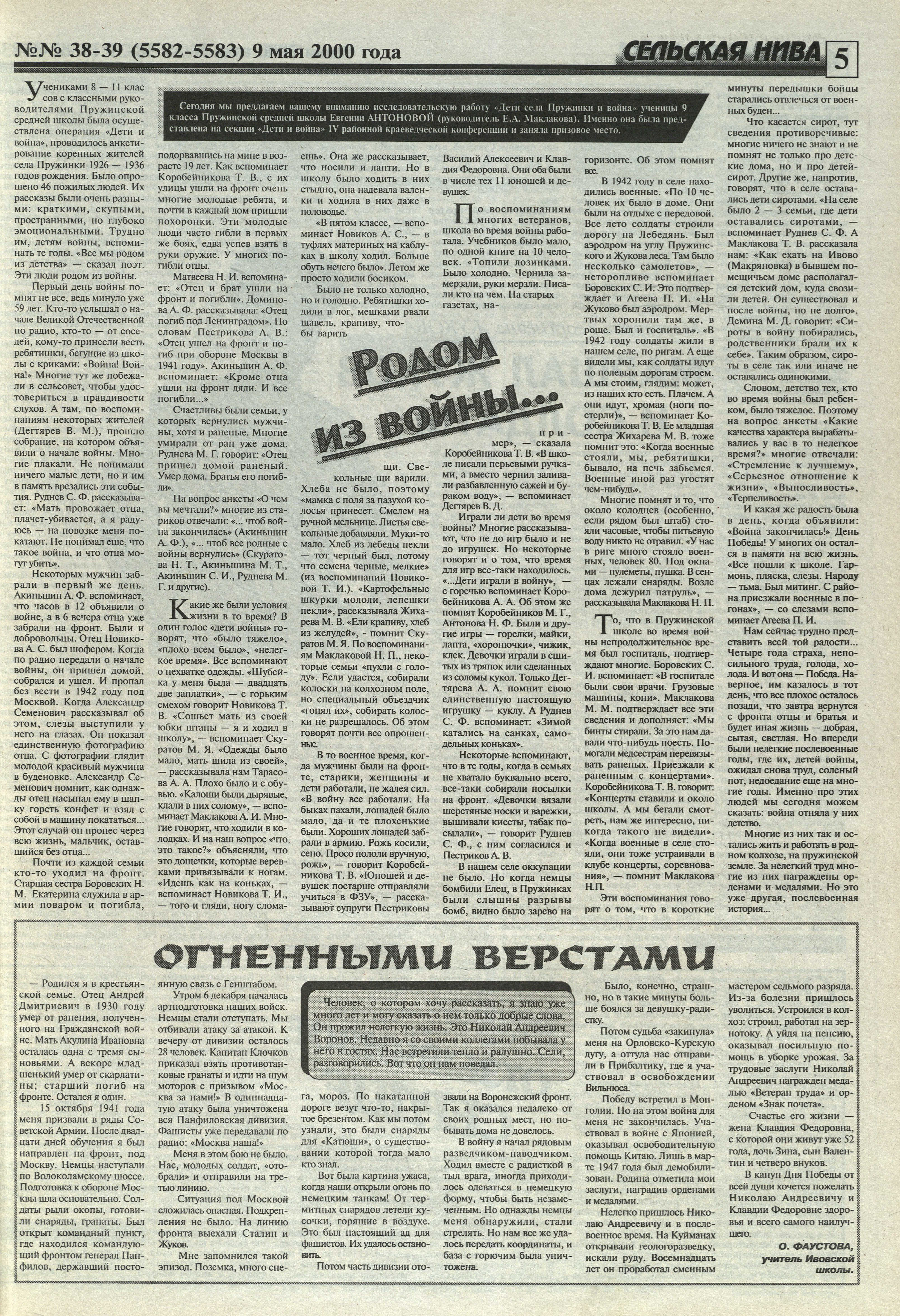 Источник: Фаустова О. Огненными верстами // Сельская нива. – 2000. – 9 мая. – С. 5.
